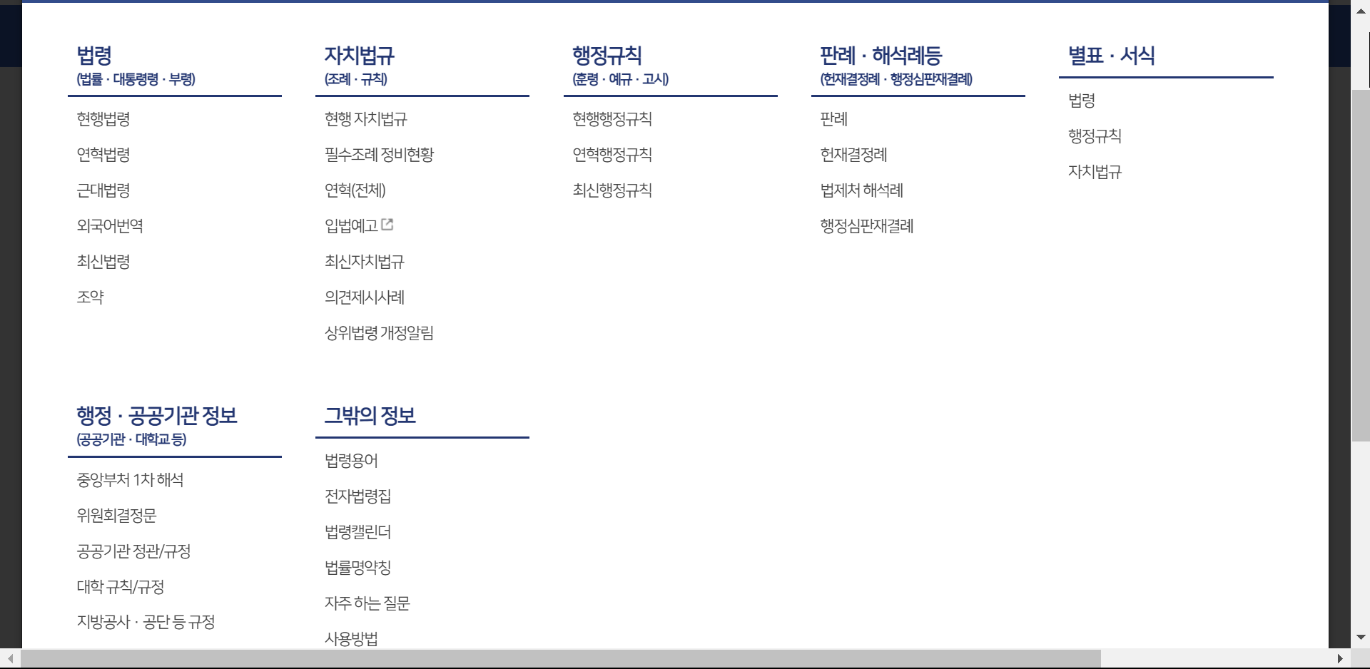 - 헌법부터 지방자치단체의 조례까지 모든 법령 검색 가능