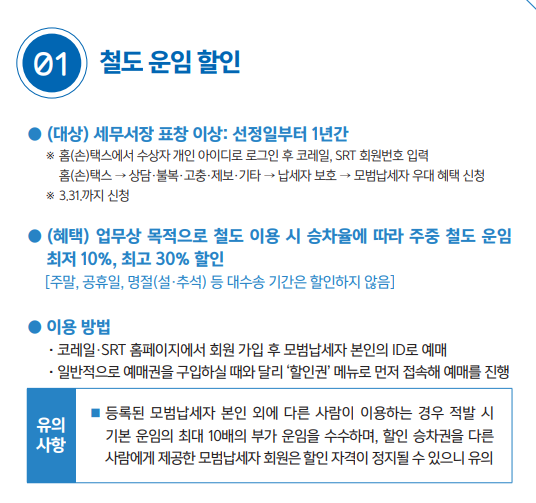 모범납세자 혜택2: 철도 운임 할인