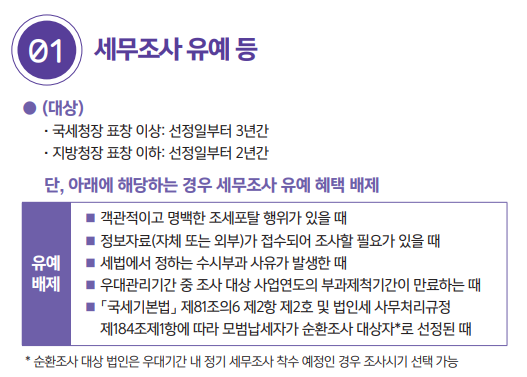 모범납사제 혜태 1: 세무조사 유예 혜택