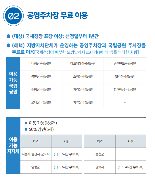 모범납세자 혜택3 : 공영주차장 및 국립공원 주차장 무료 이용