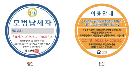 혜택 적용을 위해 국세청에서 발급한 ‘모범납세자 스티커’ 부착 필수