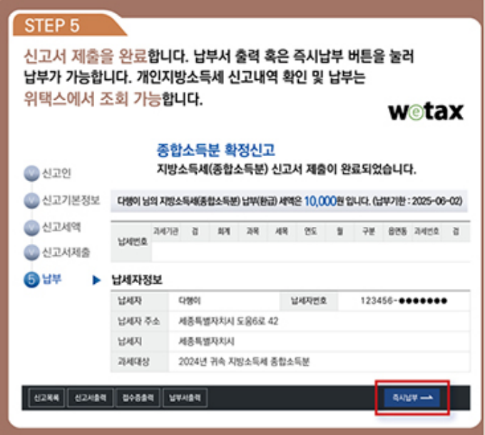 | 5단계 | 납부서 출력 또는 즉시 납부 |