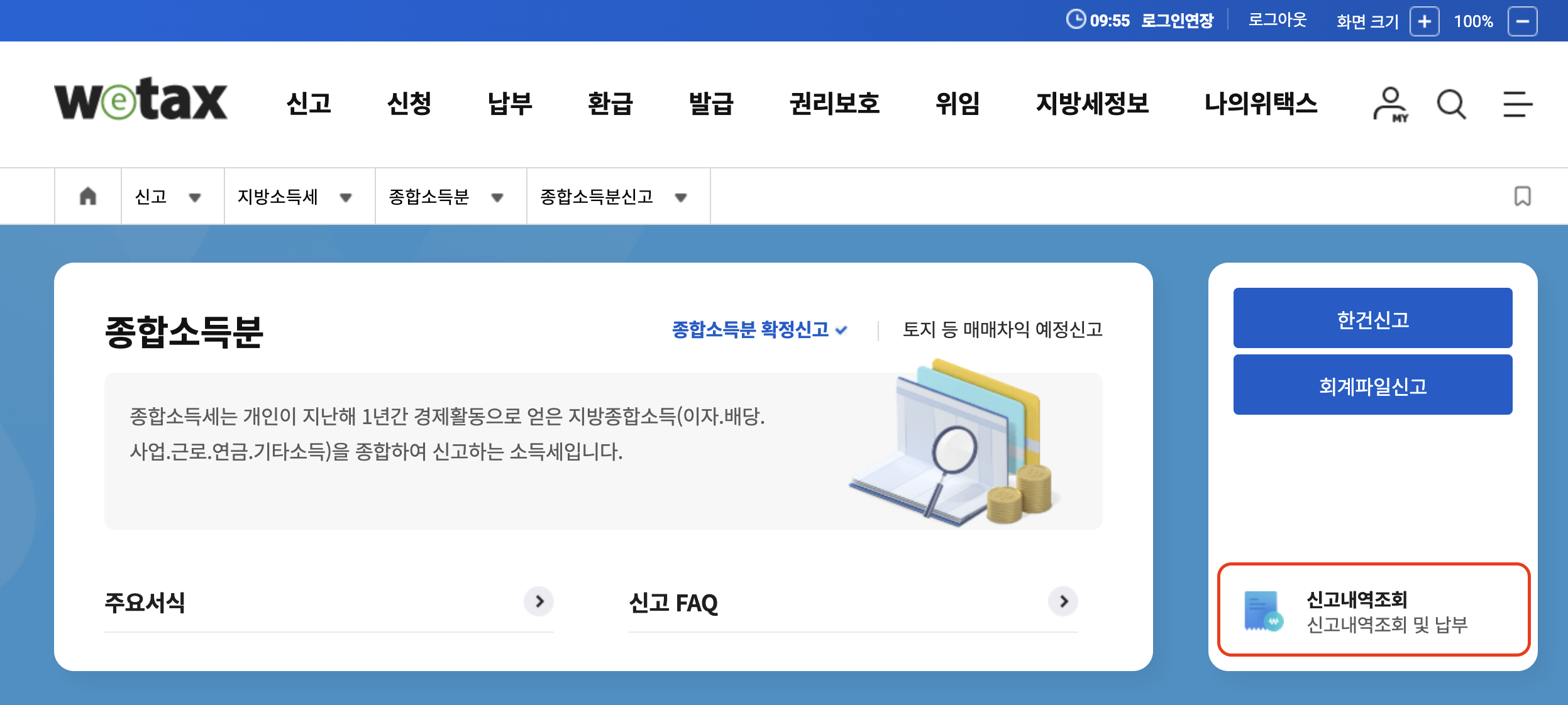 지방소득세는 종합소득세 신고가 끝난 후 위택스(Wetax)로 연결해 간단히 진행할 수 있습니다.