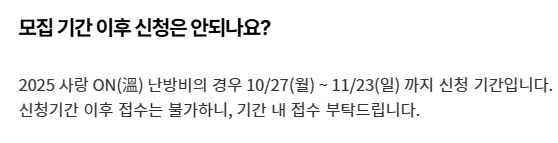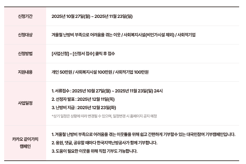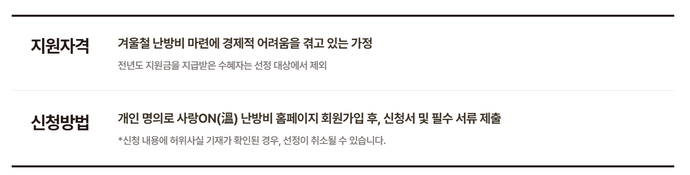 | 개인 | 겨울 난방비 부담 큰 가정 | 중복 수혜 금지 |