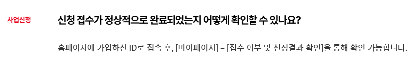 | 접수 확인 | 마이페이지에서 선정결과 조회 |